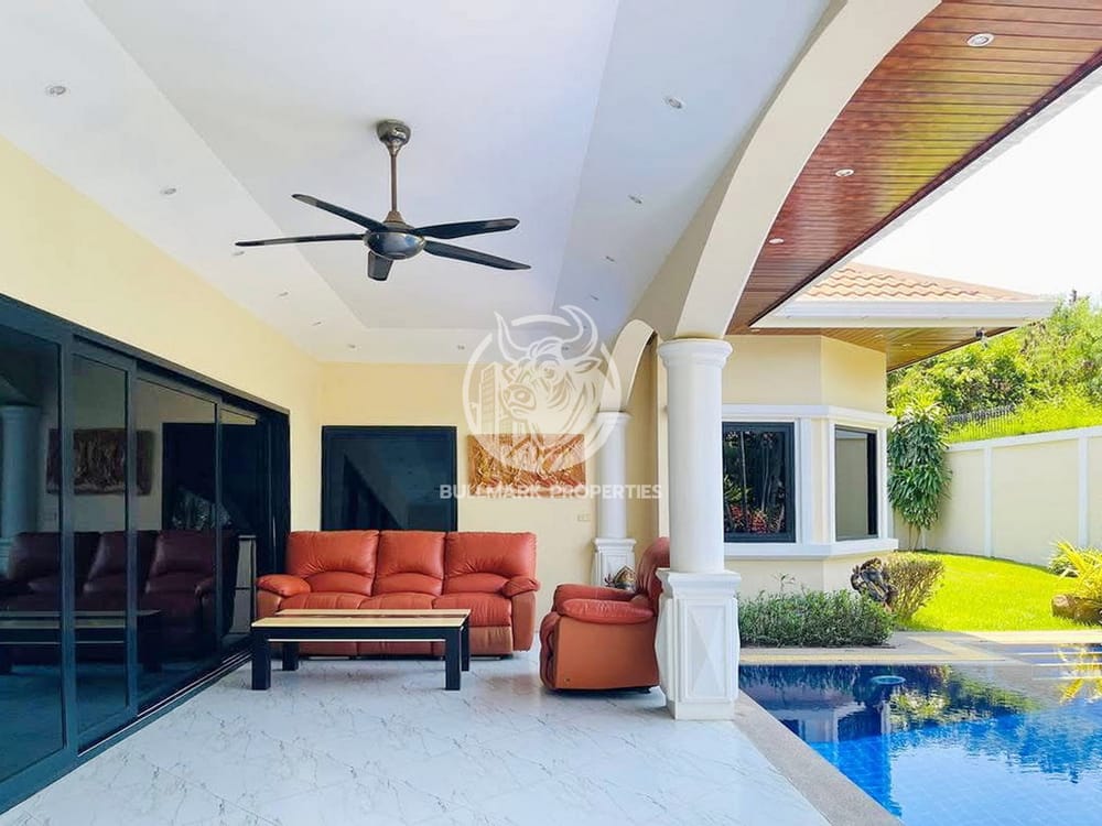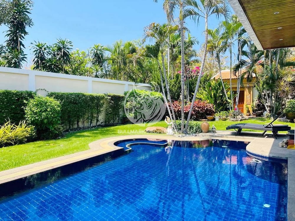 在芭堤雅的热门中天公园别墅区,探索您梦想中的度假胜地!这栋令人惊艳的三卧室泳池别墅,拥有226平方米的宽敞居住空间,占地面积达660平方米。别墅设有一个私人游泳池,是您放松身心和娱乐的完美之选。每间卧室都经过精心设计,注重舒适性和私密性,并配有四间现代化的浴室。欧式厨房设备齐全,配有抽油烟机、烤箱和微波炉,是烹饪爱好者的理想场所。全年享受空调和吊扇带来的舒适感。24/7全天候安保是您的首要保障,附近商店、餐厅和市场的便利性提升您的日常生活品质。其他设施包括专用停车场、高效的洗衣服务以及电力和自来水等基本设施。别墅距离海滩仅几步之遥,兼具宁静与便利,是家庭或在芭堤雅寻找宁静度假之所的理想选择。