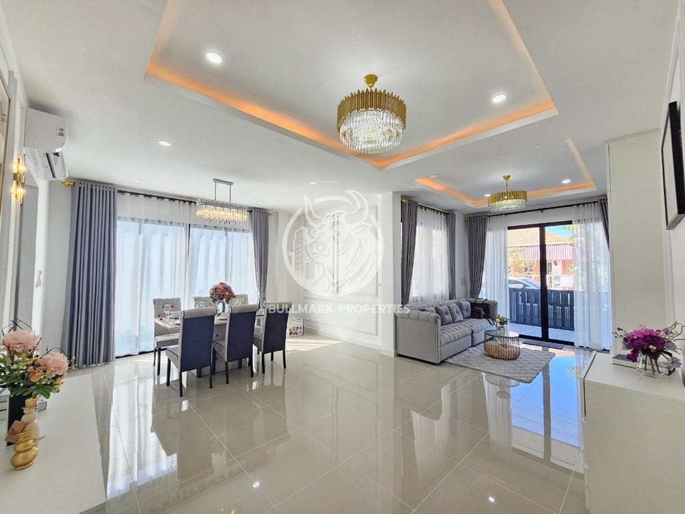 Discover the perfect blend of comfort and convenience with this stunning 3-bedroom house for rent at T.W. Park View in East Pattaya. This spacious home boasts a generous living area of 200 square meters and a land area of 224 square meters, offering ample space for relaxation and entertainment. Enjoy breathtaking city views from the comfort of your own home. The property features modern amenities such as air conditioning, a built-in kitchen complete with a kitchen hood, and essential appliances including a washing machine and microwave. With 2 bathrooms, this house is designed for both convenience and privacy. Safety and peace of mind are prioritized with 24/7 security and a guardhouse ensuring your security around the clock. The property includes designated parking for your vehicle and is conveniently located near main roads, making commuting a breeze. Residents can take advantage of nearby parks, a golf course, convenience stores, markets, schools, restaurants, and hospitals, making everyday life easy and enjoyable. Experience the best of East Pattaya living with this charming rental home that offers both luxury and functionality. Don’t miss out on this opportunity to live in a vibrant community filled with amenities at your doorstep!