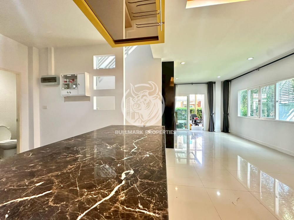 Discover your new home in this charming 3-bedroom house for rent located in The Pattalet, a serene residential community in East Pattaya. This pet-friendly property boasts a generous living area of 138 square meters and a land area of 156 square meters, providing ample space for both relaxation and play. Enjoy modern conveniences with air conditioning throughout, ensuring comfort year-round. The open-plan design includes a built-in kitchen equipped with essential appliances such as an oven and microwave, perfect for culinary enthusiasts.