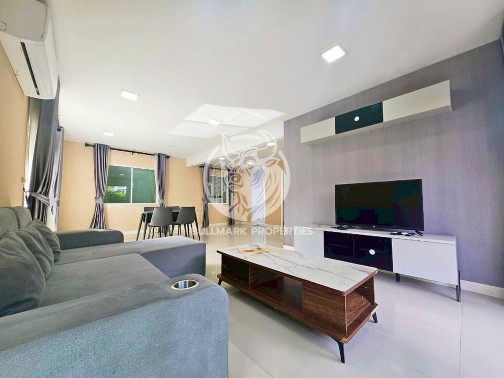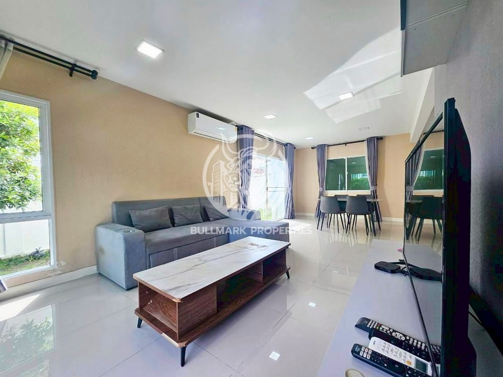 Discover your new home in this spacious 3-bedroom house for rent at Baan Pruksanara Chaiyaphruek 2, located in the vibrant East Pattaya area. This enchanting property boasts a generous living area of 170 square meters set within a land area of 216 square meters, providing ample space for comfortable living. The house features a well-equipped Thai kitchen, modern air conditioning, and a cozy balcony that invites you to enjoy the surrounding views. You'll appreciate the added conveniences of a washing machine, microwave, and a reliable water tank. Safety and security are paramount with 24/7 security, CCTV surveillance, and a guardhouse onsite. Enjoy leisure time with access to a well-maintained communal swimming pool, a fully-equipped gym, and a clubhouse perfect for social gatherings. The beautifully landscaped garden and children's area create a family-friendly atmosphere. This prime location offers easy access to the main road, making it a short drive to the beach, local shops, markets, restaurants, hospitals, and schools. Additionally, you're close to public transport options including a nearby railway station. With all these features, this house is not just a rental, but a lifestyle choice! Don't miss the opportunity to call this lovely house your new home.