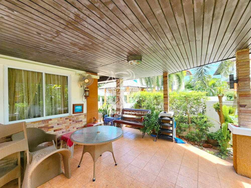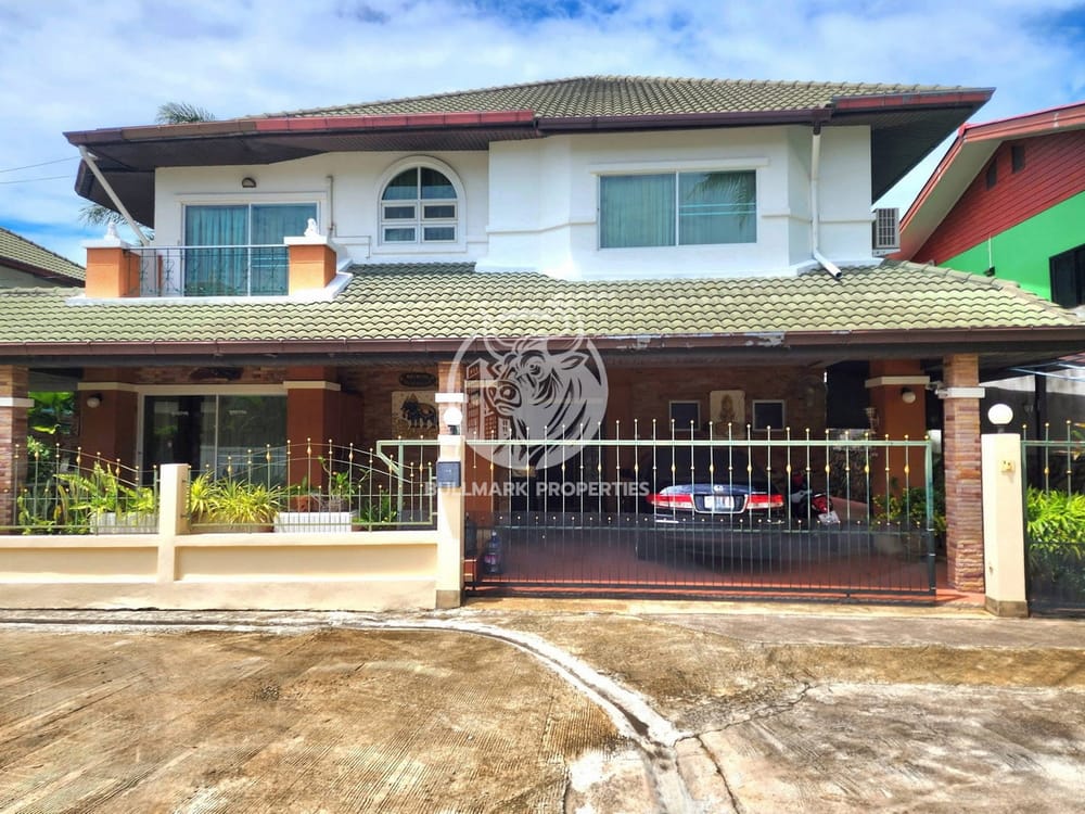 Discover your dream home in this stunning 3-bedroom house located in the prestigious Green Field Villa 2, East Pattaya. Boasting a generous living area of 270 sqm and set on a spacious land area of 340 sqm, this property offers ample space for comfortable living. Enjoy breathtaking city views from the terrace, perfect for relaxing or entertaining guests. The home features modern amenities including air conditioning, a European kitchen equipped with a kitchen hood, oven, and microwave, as well as a separate Thai kitchen, making it ideal for culinary enthusiasts. Each bedroom is accompanied by an en-suite bathroom, ensuring privacy and convenience for all occupants. The house is part of a gated community with 24/7 security, providing peace of mind for your family. Enjoy an active lifestyle with access to a communal swimming pool, gym, and nearby golf course. Additional features include a barbecue area, children's play area, and parking space. Located conveniently near main roads, shops, markets, hospitals, schools, and restaurants, this property combines luxury with practicality. Don't miss your chance to own this exceptional residence in a vibrant neighborhood.