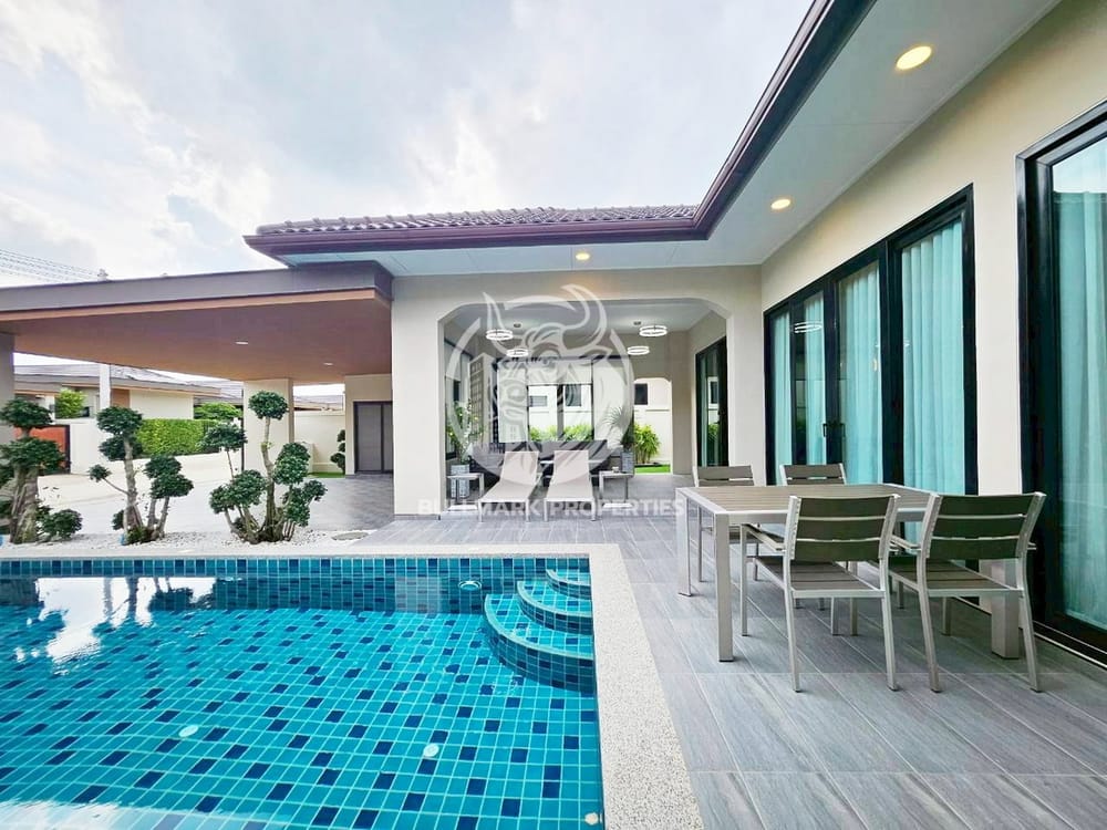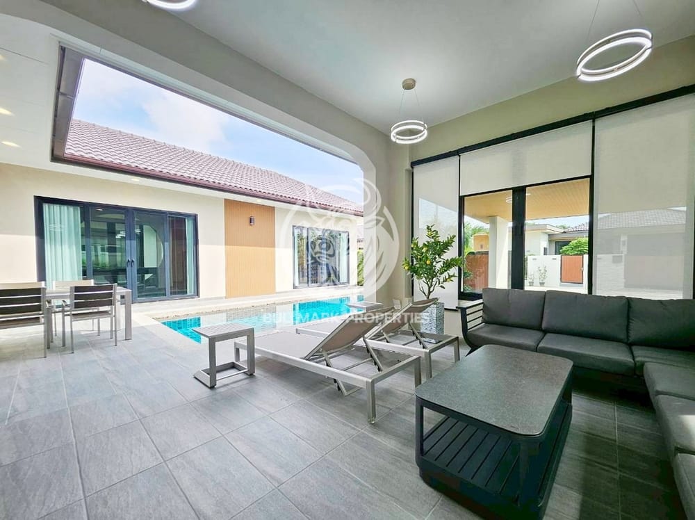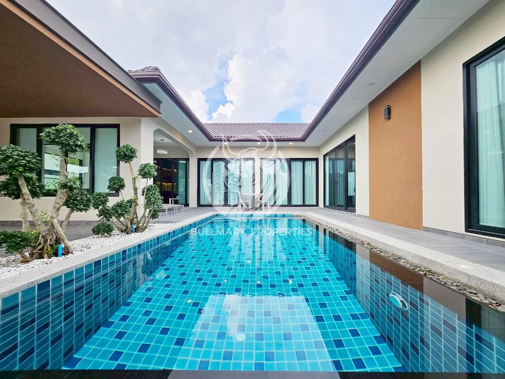 Discover your dream home at the exquisite 3-Bedroom Pool Villa located in the serene Garden Ville 8, Huay Yai. This luxurious villa offers a spacious living area of 230 sqm, nestled on a generous land area of 436 sqm, providing ample space for comfort and relaxation. Each of the three well-appointed bedrooms comes with its own bathroom, ensuring privacy and convenience for all occupants. Enjoy modern amenities including an air conditioner, a European-style kitchen equipped with a washing machine, oven, and microwave, making meal preparations a breeze. Step outside to your private swimming pool, perfect for unwinding on sunny days. The property is safeguarded by round-the-clock security, ensuring peace of mind. Located near main roads, the villa offers easy access to a variety of local conveniences including shops, restaurants, a market, and even a golf course—ideal for both leisure and lifestyle. With the beach just a short drive away, this villa is perfect for those seeking a perfect blend of luxury, comfort, and convenience. Whether you are looking for a family home or a vacation getaway, this property is an exceptional opportunity not to be missed!