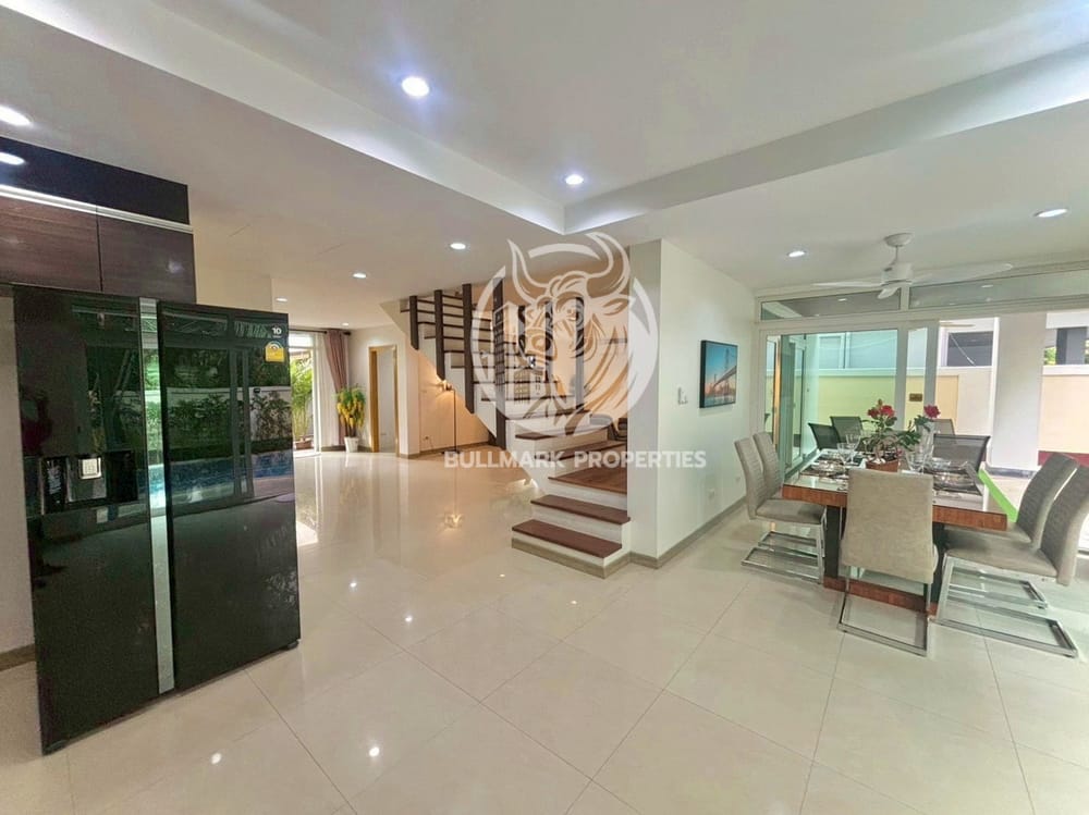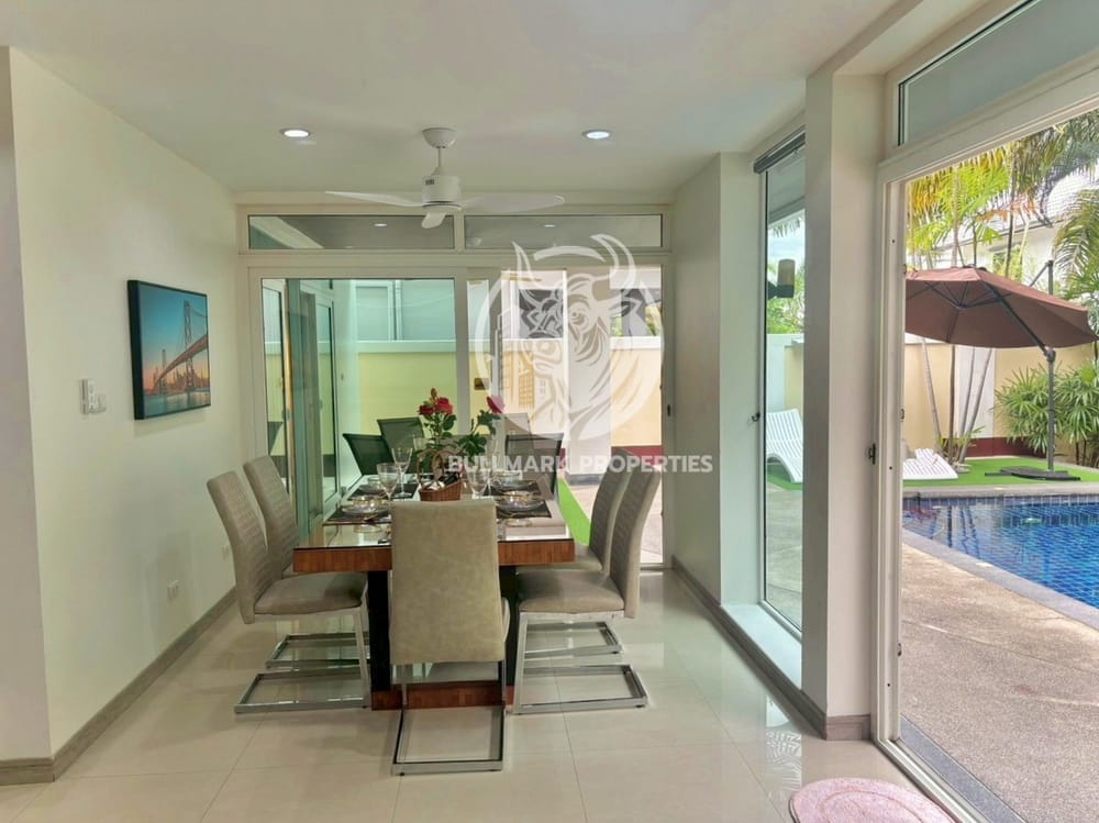 Discover a luxurious 4-bedroom house for rent at Tropicana Pool Villa in the vibrant Jomtien area of Pattaya. This exquisite property features 5 modern bathrooms and sits on a generous land area of 372 square meters, providing ample space for comfortable living. Each room is equipped with air conditioning, ensuring a pleasant retreat from the tropical heat. Enjoy serene mornings and stunning views from the spacious balcony and terrace. The fully equipped European kitchen comes complete with an oven, microwave, and kitchen hood, ideal for culinary enthusiasts. A private swimming pool invites you to relax and soak up the sun in your own oasis. The house also offers essential amenities, including a water tank, internet, and laundry service, and is in close proximity to shops, restaurants, markets, and a hospital. With the main road and public transportation just a short distance away, convenience is at your fingertips. Don't miss the opportunity to live in this stunning property, just moments from the beach!