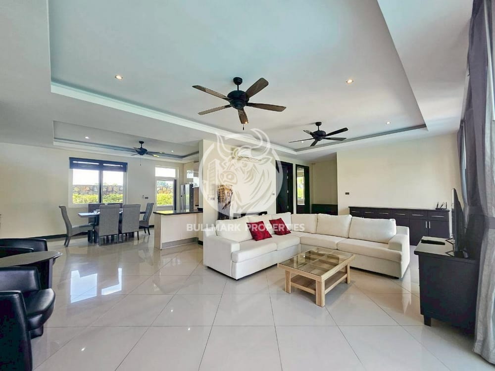 Discover the perfect family retreat with this pet-friendly 4-bedroom villa located in the serene area of Mabprachan, Pattaya. With a generous living area of 250 sqm and an expansive land area of 800 sqm, this modern home boasts a spacious layout ideal for both relaxation and entertainment. The villa features six luxurious bathrooms, ensuring comfort for all residents and guests. Enjoy cooking in the European kitchen equipped with a washing machine and convenient amenities directly accessible from the impressive terrace. Dive into your own private swimming pool surrounded by lush greenery, or take a leisurely stroll to nearby parks and golf courses. This property also offers 24/7 security, dedicated parking space, and high-speed internet, providing peace of mind and convenience. Located close to schools, restaurants, and a convenience store, this villa perfectly blends comfort with accessibility, making it an ideal choice for families and pet owners seeking a serene lifestyle in East Pattaya.