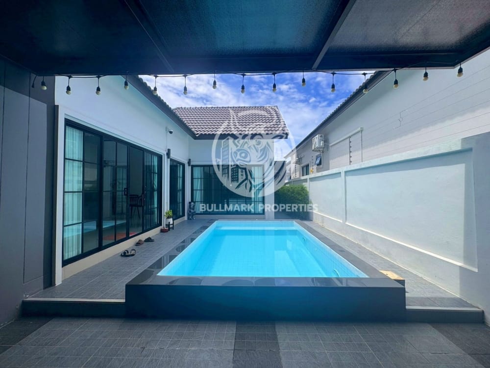 Single-storey 3-bedroom pool villa for rent in the Mabprachan Lake area. This detached home features a European-style kitchen with an oven and microwave, air conditioning, and internet—perfect for comfortable living. The property includes CCTV, a water tank, and electricity supply. Ideally located near the main road, shops, schools, restaurants, parks, and golf courses—offering a perfect blend of comfort, convenience, and lifestyle. Ideal for long-term living.
