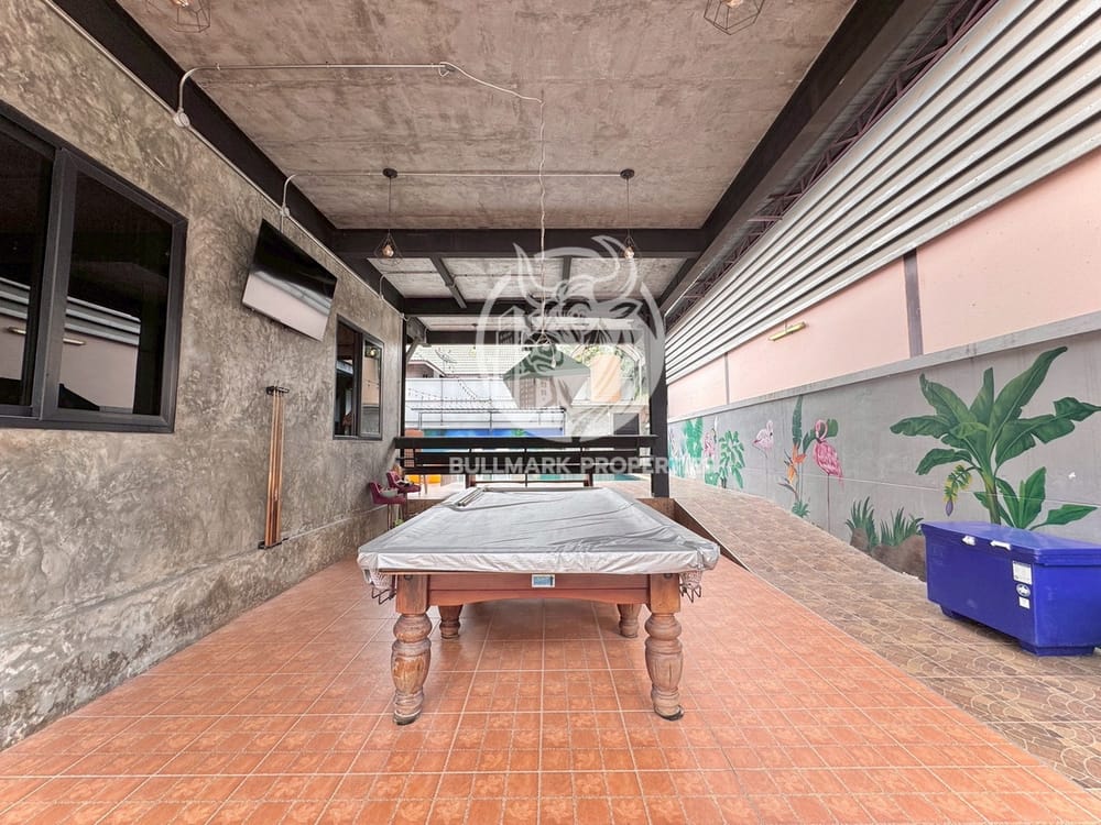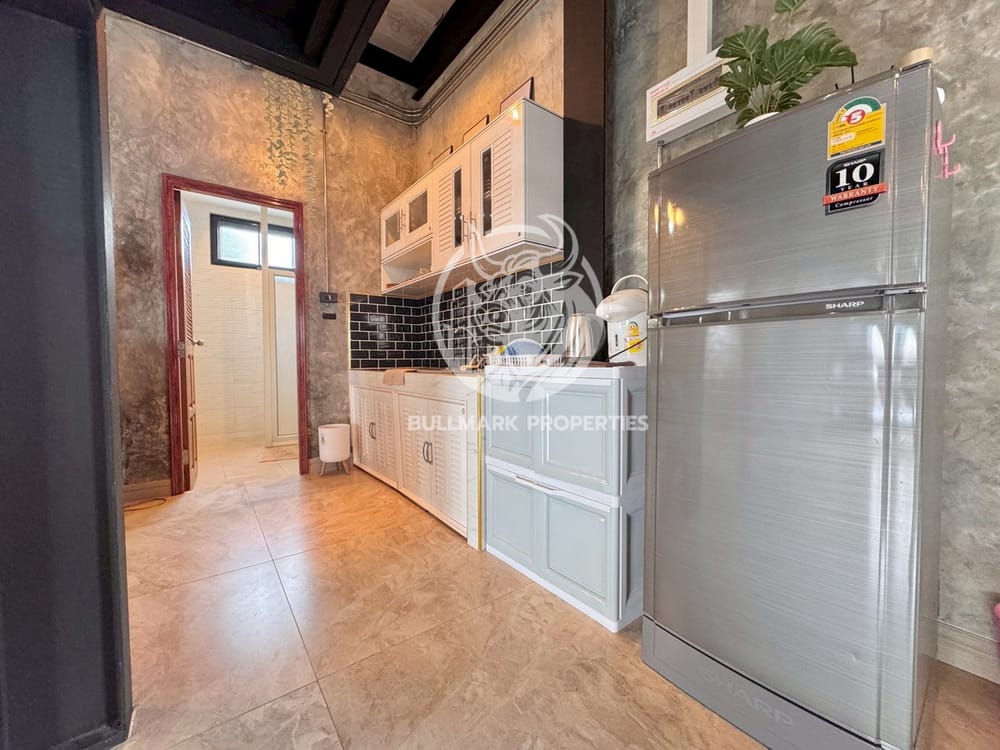 This villa is equipped with modern amenities, including air conditioning throughout, a washing machine, and a microwave for your convenience. The well-designed European kitchen, alongside a traditional Thai kitchen, caters to all your culinary needs, complete with a kitchen hood.