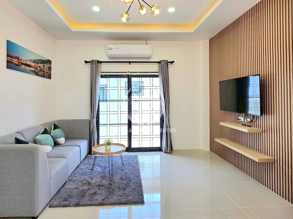 Discover your dream home in the vibrant area of East Pattaya! This spacious 3-bedroom house offers a generous living area of 185 square meters and is situated on a 208 square meter land plot. The property features an inviting garden and convenient parking, making it perfect for families and individuals alike. Enjoy the comforts of modern living with essential amenities such as air conditioning, a European kitchen complete with a kitchen hood and microwave, and a water tank for added convenience. Safety and security are paramount, with 24/7 security personnel and CCTV surveillance ensuring peace of mind. Located near the main road, this home provides easy access to nearby shops, restaurants, and markets, making everyday errands a breeze. It's also in close proximity to schools and parks, ideal for families with children. Don't miss out on this fantastic opportunity to own a beautiful home in East Pattaya, where comfort meets convenience. Schedule a viewing today!
