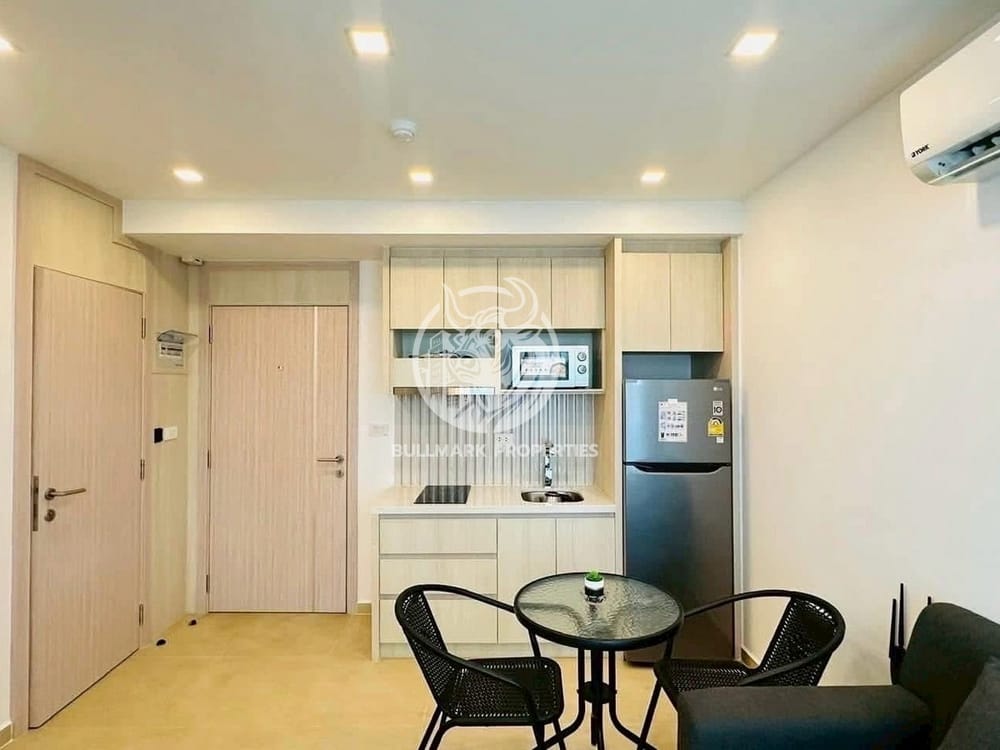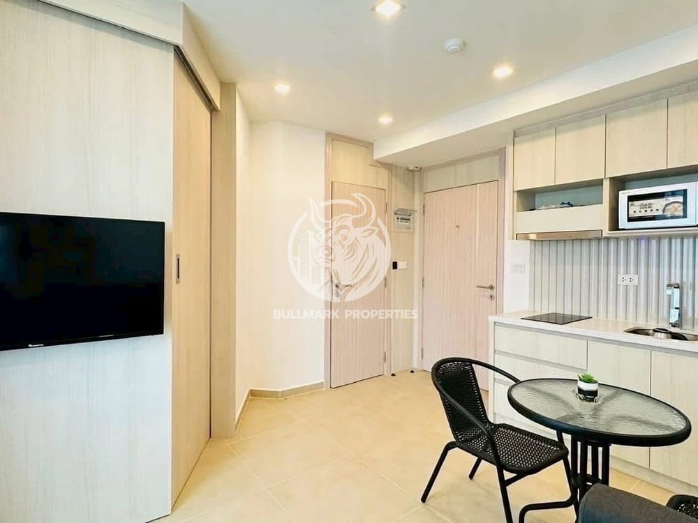 Discover urban living at its finest in this stylish 1-bedroom condo located in the prestigious City Garden Olympus in Pattaya. Spanning a comfortable 27 square meters, this beautiful condo features a chic living space with a stunning view of the city. The well-equipped European kitchen, complete with a modern kitchen hood and microwave, is perfect for cooking and entertaining. Enjoy the convenience of a private balcony where you can relax and soak in the panoramic views. The unit comes with an air conditioner to keep you cool throughout the year.